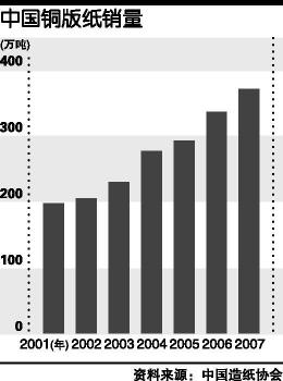 中國造紙協(xié)會秘書長趙偉向記者介紹,目前中國銅版紙市場已經(jīng)形成了外資企業(yè)主導(dǎo)、幾近壟斷的局面,金光集團、太陽集團和大宇集團等外資制紙企業(yè)瓜分了整個銅版紙市場。