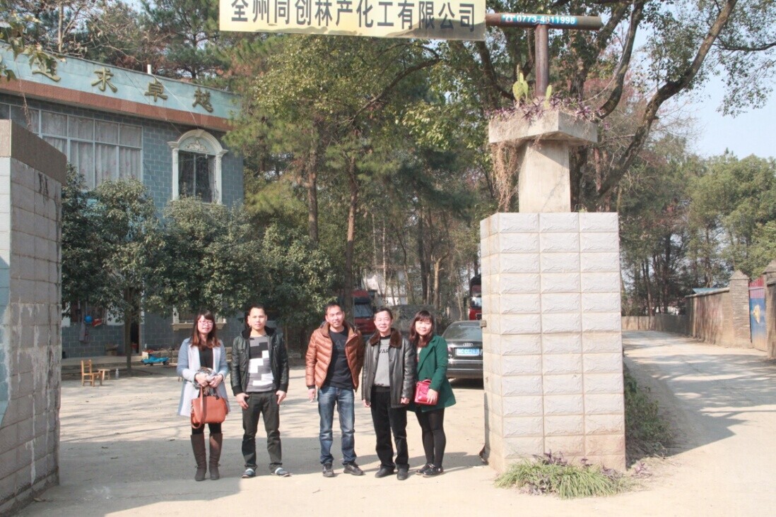 桂林恭城松寶林化有限公司是桂林的松香規(guī)模企業(yè),目前桂林市場(chǎng)上幾乎沒(méi)有松脂流通,但松寶林化的工廠工作仍在繼續(xù)。走訪團(tuán)在恭城走訪過(guò)程中,偶遇了廣東富侍德化工有限公司的一行調(diào)研人員,雙方就廣東目前的松香市場(chǎng)情況進(jìn)行了溝通交流。