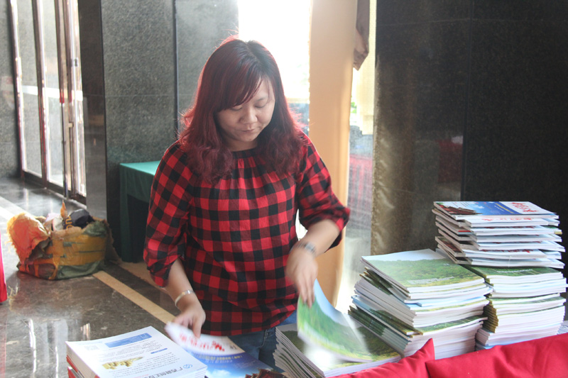 (作為會務工作的負責人,杭迺懿在緊張地做好會議資料的分發(fā)工作)