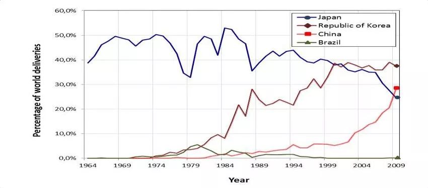 再舉一個例子。1970年代,巴西是僅次于日本的世界第2大造船國,鼎盛時一年造船產量達72.9萬噸,提供的直接就業(yè)崗位近4萬個,還帶動10萬個間接就業(yè)。