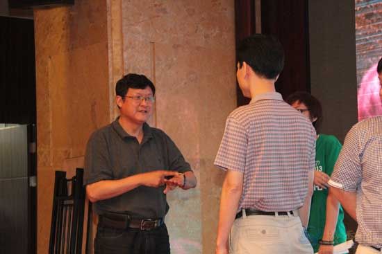 一日游當(dāng)晚,大家在怡和中餐廳用餐并欣賞了白天攝影師給大家拍下的精彩瞬間,主持人為在“驛站傳書”中獲勝的紅隊(duì)與在“綁腿接力賽”中勝出的黃隊(duì)頒發(fā)了獎(jiǎng)品,綠隊(duì)也獲得了鼓勵(lì)獎(jiǎng),由于綠隊(duì)人員較齊,并有意猶未盡的感覺,在大家的要求下,現(xiàn)場(chǎng)演示了“袖手旁觀”。主持人宣傳結(jié)束之后,臺(tái)上的人依舊不愿離去,繼續(xù)交談?dòng)螒蛑械男牡谩:芏嗥髽I(yè)的參會(huì)代表表示,這個(gè)游戲平時(shí)很少玩,再加上平時(shí)大家在一起的時(shí)間較少,通過這樣的活動(dòng)可以增進(jìn)不少感情,大家也變得更有默契了,希望高峰論壇主辦單位能多組織這樣有益身心健康的活動(dòng)。