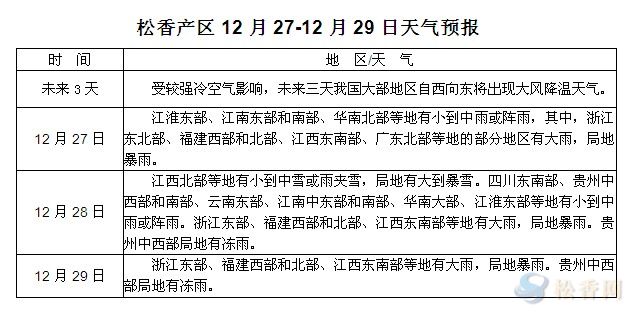 華訊松香網(wǎng)提醒:未來(lái)三天受強(qiáng)冷空氣影響,湘鄂贛等中東部出現(xiàn)大幅降溫,局地有降雪,華南部分地區(qū)大到暴雨;云南天氣相對(duì)晴好,采脂工作可正常進(jìn)行。近日各地降溫較為明顯,局部伴有強(qiáng)降雨甚至降雪,影響松樹出脂,加上松香行情膠著,目前粵桂閩贛大部分工人已經(jīng)下山,工廠也陸續(xù)停產(chǎn),預(yù)計(jì)元旦前后以上地區(qū)產(chǎn)季基本結(jié)束。