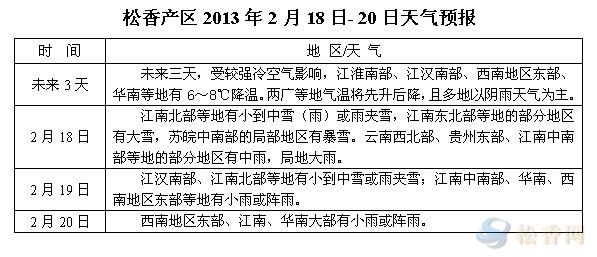 華訊松香網(wǎng)溫馨提醒:未來三天,受較強冷空氣影響,多數(shù)產(chǎn)區(qū)將迎來不同幅度降溫,且多云陰雨天氣,當前年味尚濃,鮮少有采脂工人上山采脂或做相關準備工作。