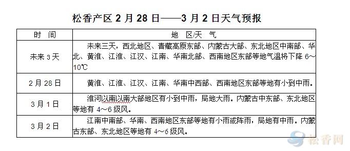 華訊松香網(wǎng)溫馨提醒:未來三天,受較強冷空氣影響,多數(shù)產(chǎn)區(qū)將迎來不同幅度降溫,兩廣等地降溫陰雨天氣,或使松林承包洽談工作略受滯緩。另云南地區(qū)大部以晴朗天氣為主,采脂工人上山采脂或進(jìn)行采脂前的準(zhǔn)備工作可順利進(jìn)行,新脂預(yù)期將在3月中下旬陸續(xù)下山。