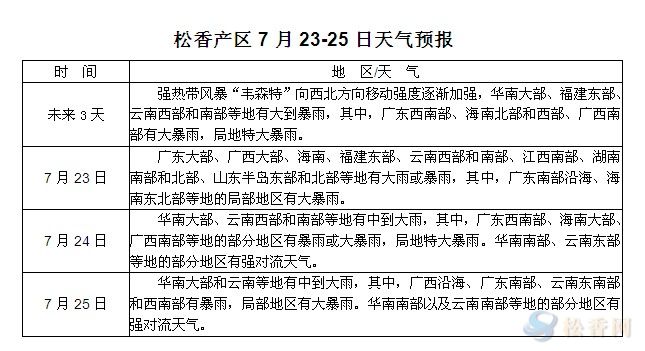 松香產(chǎn)區(qū)7月23日-25日天氣預(yù)報(bào)