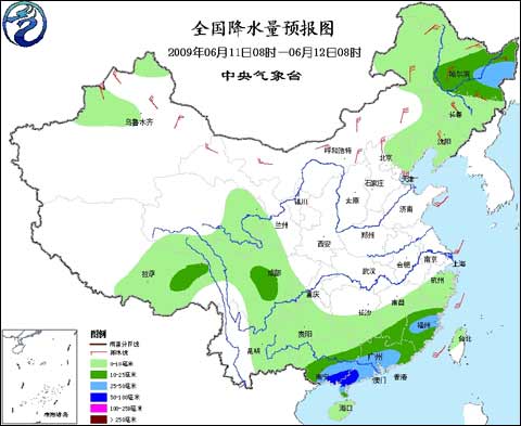中央氣象臺10日18時發(fā)布暴雨及強(qiáng)對流預(yù)報:11日白天,廣西南部和中東部、廣東、海南、湖南南部、江西南部、浙江南部、福建大部有大雨到暴雨。