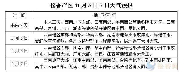 華訊松香網(wǎng)溫馨提醒:未來三日,云南西部、貴州、廣西、湖南等地的部分地區(qū)有中雨,局地大雨;粵閩贛大部地區(qū)晴或陰天為主。受強(qiáng)冷空氣影響,多數(shù)產(chǎn)區(qū)將迎來大風(fēng)降溫天氣,采脂工的積極性或?qū)⑹苡绊憽K芍糠矫?,本周江西、福建等地最后一批松脂上市量或?qū)⒂兴黾?,云南地區(qū)隨著產(chǎn)季深入,脂量有望進(jìn)一步增加;兩廣等地如無更多利好因素刺激,或延續(xù)前期緩慢釋放狀態(tài)。