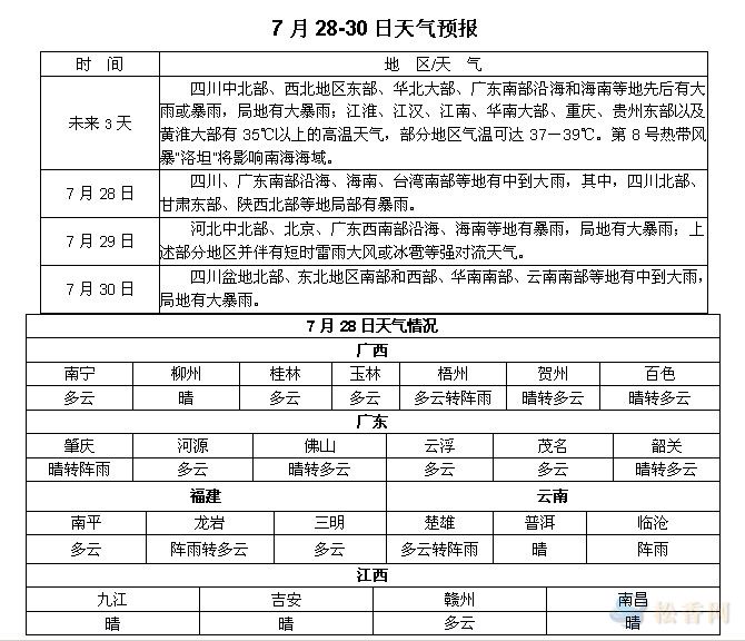 松香產區(qū)7月1-30日天氣預報