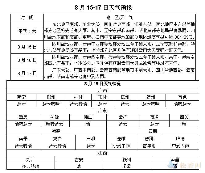 松香產(chǎn)區(qū)8月15-17日天氣預(yù)報(bào)