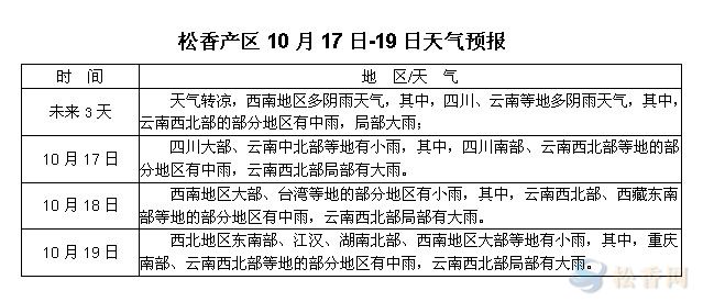 華訊松香網(wǎng)提醒:未來三天兩廣、江西福建等松香主產(chǎn)區(qū)秋高氣爽,除了晝夜溫差較大之外,天氣情況較好。值得關(guān)注的是西南地區(qū)多陰雨天氣,屆時(shí)云南、四川等地降水持續(xù),尤其云南多地受雨水天氣影響,松脂量或?qū)⒉粫?huì)大量釋放,但是否對(duì)會(huì)在松香市場(chǎng)整體走勢(shì)有所影響,有待觀察。