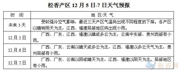 松香產(chǎn)區(qū)12月5日-7日天氣預報