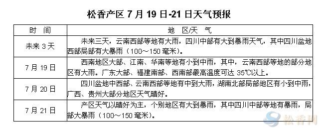 華訊松香網(wǎng)溫馨提示:未來三天,產(chǎn)區(qū)天氣以晴好為主,局地有短時(shí)小到中雨,其中,云南西部等地的部分地區(qū)有中到大雨,四川局地有大暴雨,林區(qū)工作人員注意防雷防暴。天氣晴朗有利于松脂采收運(yùn)輸,但受各地農(nóng)忙節(jié)氣影響,部分采脂人員將轉(zhuǎn)移至農(nóng)作物收割、播種中,暫緩采脂售脂。