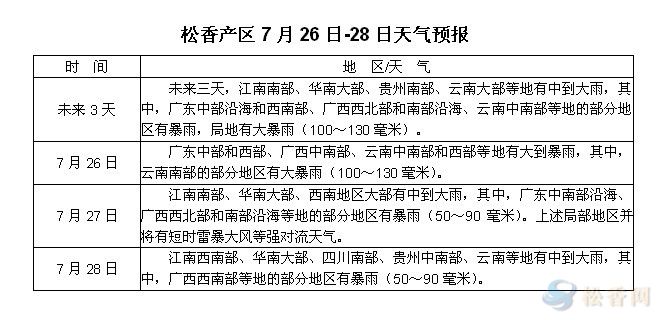 未來三天,華南、西南大部有中到大雨,其中兩廣、云南部分地區(qū)有暴雨,局部地區(qū)并將有短時雷暴大風等強對流天氣,林區(qū)工作人員注意防范地質(zhì)災(zāi)害。分析認為,持續(xù)強降雨使松脂采收運輸受阻,市場松脂供應(yīng)量將維持偏少的局面,短期內(nèi)有助于脂價維穩(wěn)。