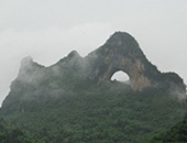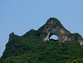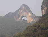 8日早上8:30,大伙向最后一個景點出發(fā)——月亮山景區(qū)的大榕樹,這也是桂林陽朔的一個著名景點。大巴士開進景區(qū)停車場剛停穩(wěn),大伙就魚貫而出直奔目的地,進入景區(qū)大門口,只見一棵千年古榕遮天蔽日,樹圍大約七米多,高近二十米,枝繁葉茂,盤根錯節(jié),氣根如老人胡須在風(fēng)中飄拂,樹干有的貼地而生,有的斜出如飛龍破霧。大榕樹下的另一側(cè)是金寶河,河水緩緩流淌,明凈如鏡,一排竹筏??亢舆叄唤饘毢訉Π队幸恍∩?,山中空如一座石門,叫穿巖;巖頂左側(cè)石壁上有一石,如鉤;洞口臨水一石,如蛙;在此設(shè)有劉三...