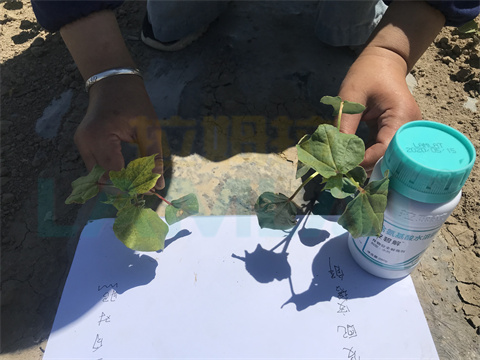 新疆石河子148團(tuán)的李大哥近期犯了難,自家300畝的棉花出苗不齊,葉片個(gè)個(gè)萎靡不振,向下卷曲,剛發(fā)出來的新葉也是焦黃,這讓李大哥急得團(tuán)團(tuán)轉(zhuǎn),找附近專業(yè)的人看看說是棉花中了藥害。壞了!這可咋辦?棉花發(fā)生藥害如何解除呢?這時(shí)一位鄰居把當(dāng)?shù)亟?jīng)銷商程總的電話給了李大哥,鄰居還說“棉花發(fā)生藥害不可怕,有拉姆拉安碧解能解它”。