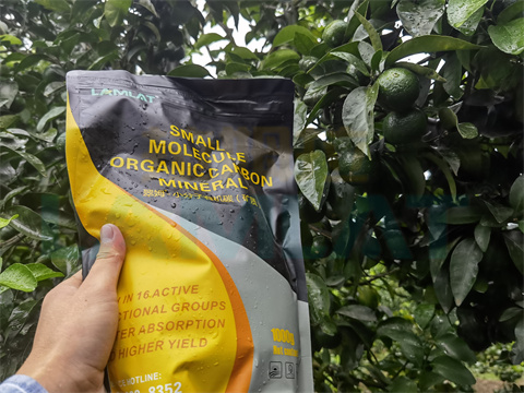 這里以果樹為例,果樹在開花坐果前會(huì)消耗大量的養(yǎng)分,如果供應(yīng)不足會(huì)很容易造成落花落果現(xiàn)象,而在開花期間一定不能多澆水,容易造成坐果不良,這時(shí)就需要我們?cè)陂_花前使用高磷水溶肥和礦源黃腐酸鉀,例如拉姆拉升級(jí)版的翠姆“小分子有機(jī)碳”,效果明顯。